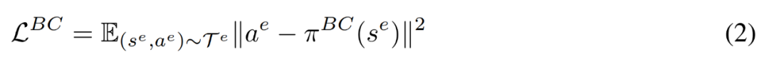BC 對(duì)應(yīng)于求解方程 2 中的最大似然問(wèn)題,其中 T^e 指的是專家演示。當(dāng)由具有固定方差的正態(tài)分布參數(shù)化方程時(shí),我們可以將目標(biāo)定義為回歸問(wèn)題,其中給定輸入 s^e,π^BC 需要輸出 a^e。