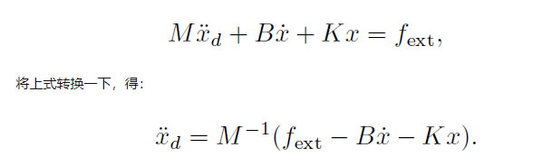 我們假設機械臂的末端是一個阻尼質量彈簧系統,當有了外力作用時,我們通過模型計算,這個虛擬的MBK系統的加速度,速度,位置應處于什么狀態。最后,通過直接篡改位置環,去模擬一個MBK系統;